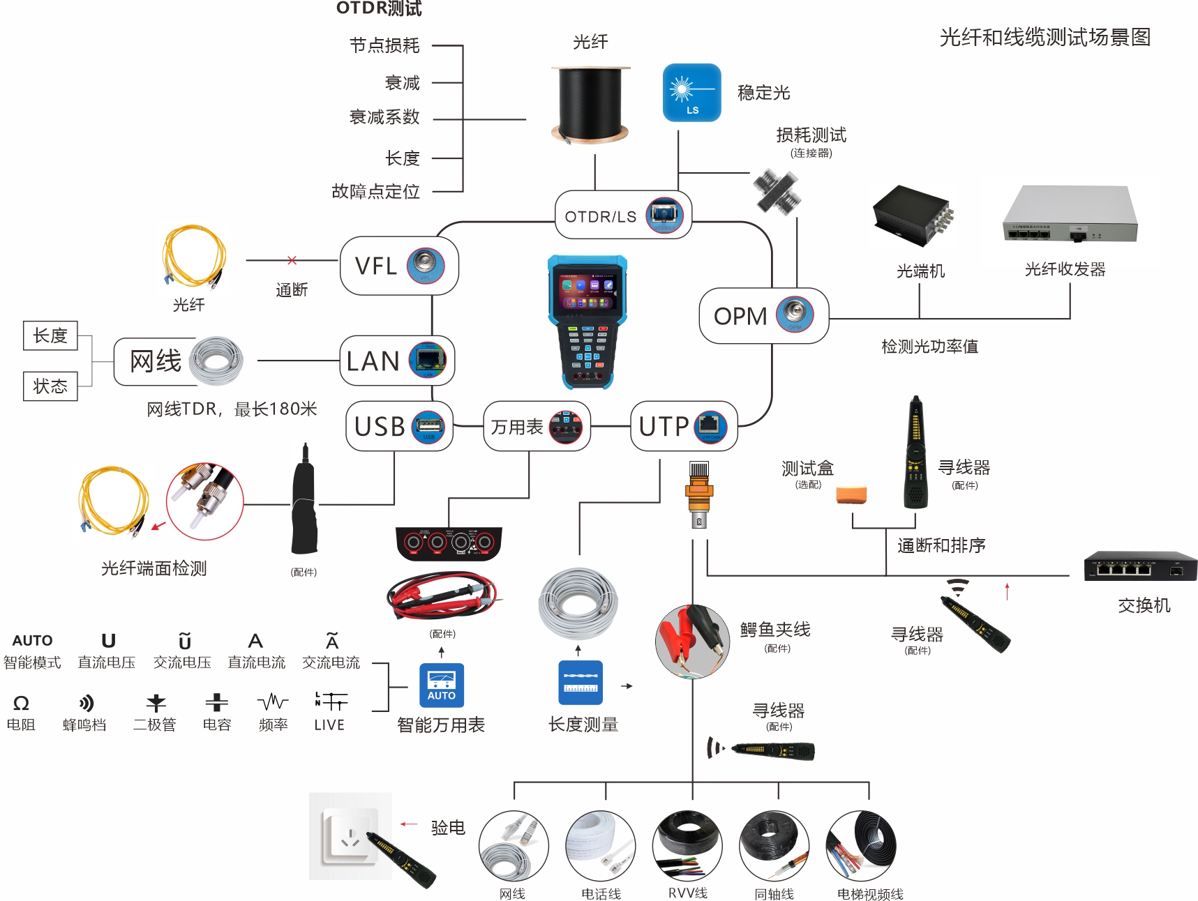 OTDR带光测试/智能数字万用表/POE检测/线缆长度测试/网络测试